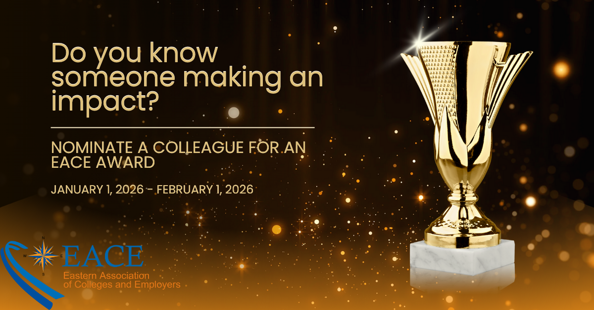 Member Recognition Awards:Excellence in Program Development & Innovation AwardThis award recognizes excellence in the creation, enhancement, or implementation of an innovative program within recruiting or career services. It celebrates individuals or teams who have designed and executed a program that demonstrates creativity, impact, and long-term value to their institutions or organizations. Excellence in Diversity and Inclusion AwardThis award recognizes EACE members who have demonstrated leadership, innovation, and commitment in advancing equity, access, and inclusion within career services or recruiting. Recipients of this award have made measurable and lasting impacts through programs, partnerships, policies, or advocacy efforts that promote inclusive excellence. Excellence in Technology AwardThis award honors innovative, creative, and effective uses of technology that significantly enhance the delivery of services and advance success within the organization. Recipients demonstrate excellence in leveraging technology or social media to improve outcomes, streamline processes, and/or expand access. Excellence in Employer Partnership AwardThis award honors an employer who has demonstrated exceptional dedication to supporting college students and strengthening campus recruiting efforts. The recipient exemplifies outstanding partnership through a sustained commitment to recruiting, hiring, and cultivating future professionals. This employer views campuses as strategic partners rather than solely as talent pipelines. Through collaboration, mentorship, and meaningful investment in student success, they demonstrate a deep commitment to helping students transition from classroom to career and to developing the next generation of talent. Their impact may be realized through partnership with a specific institution or through broader engagement with professional associations such as EACE.